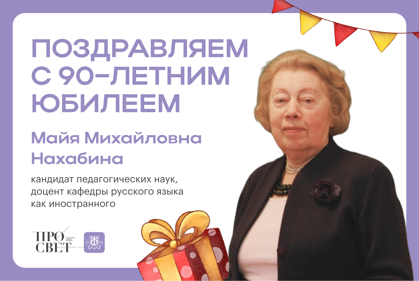 Сегодня исполняется 90 лет доценту кафедры русского языка как иностранного Майе Михайловне Нахабиной.