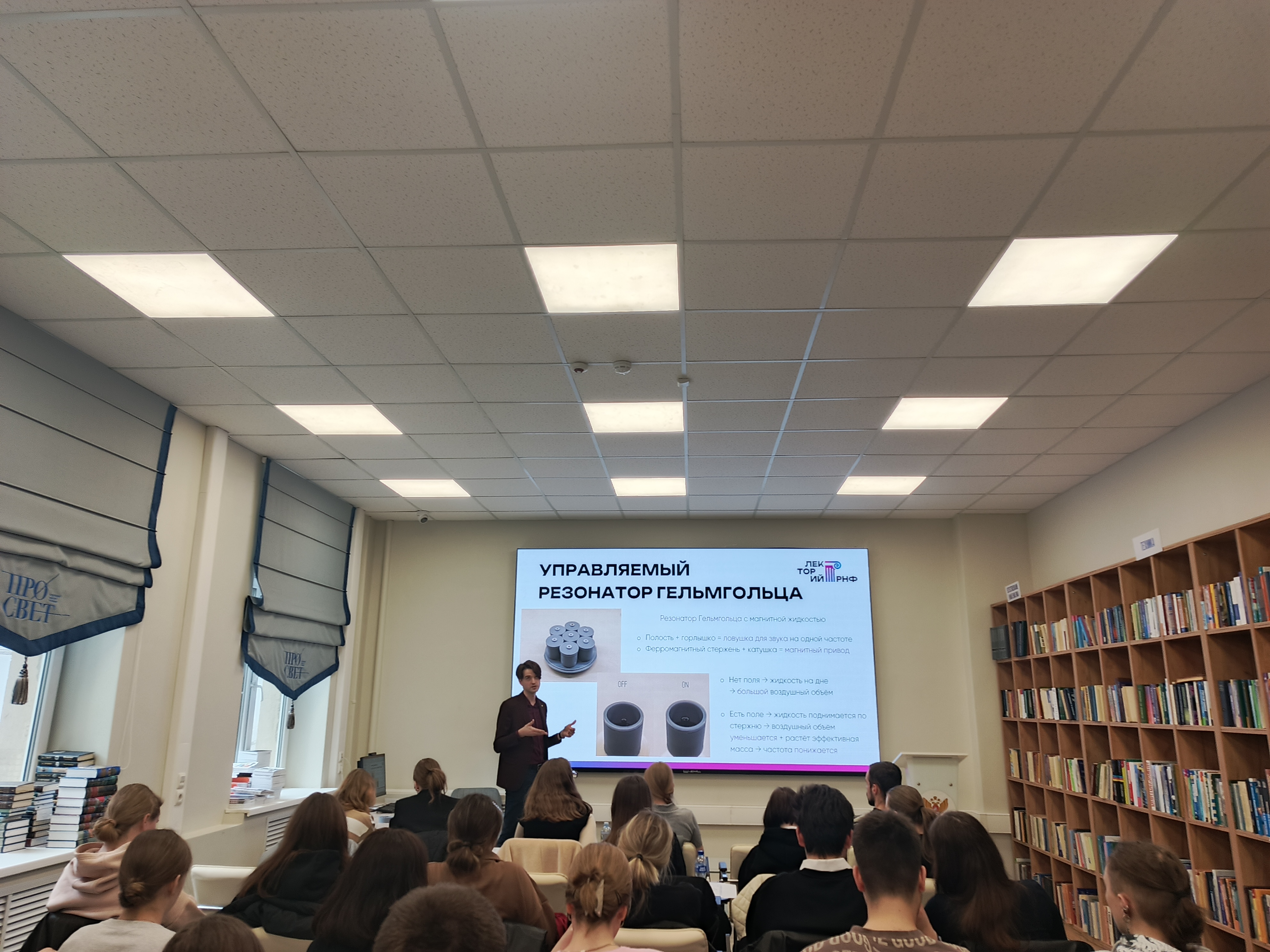 - Александр Дмитриевич Курилов, кандидат физико-математических наук, замдиректора педагогического технопарка «Кванториум» им. И.В. Курчатова, заведующий лабораторией, выступил с темой «Активные метаматериалы для управления звуком».