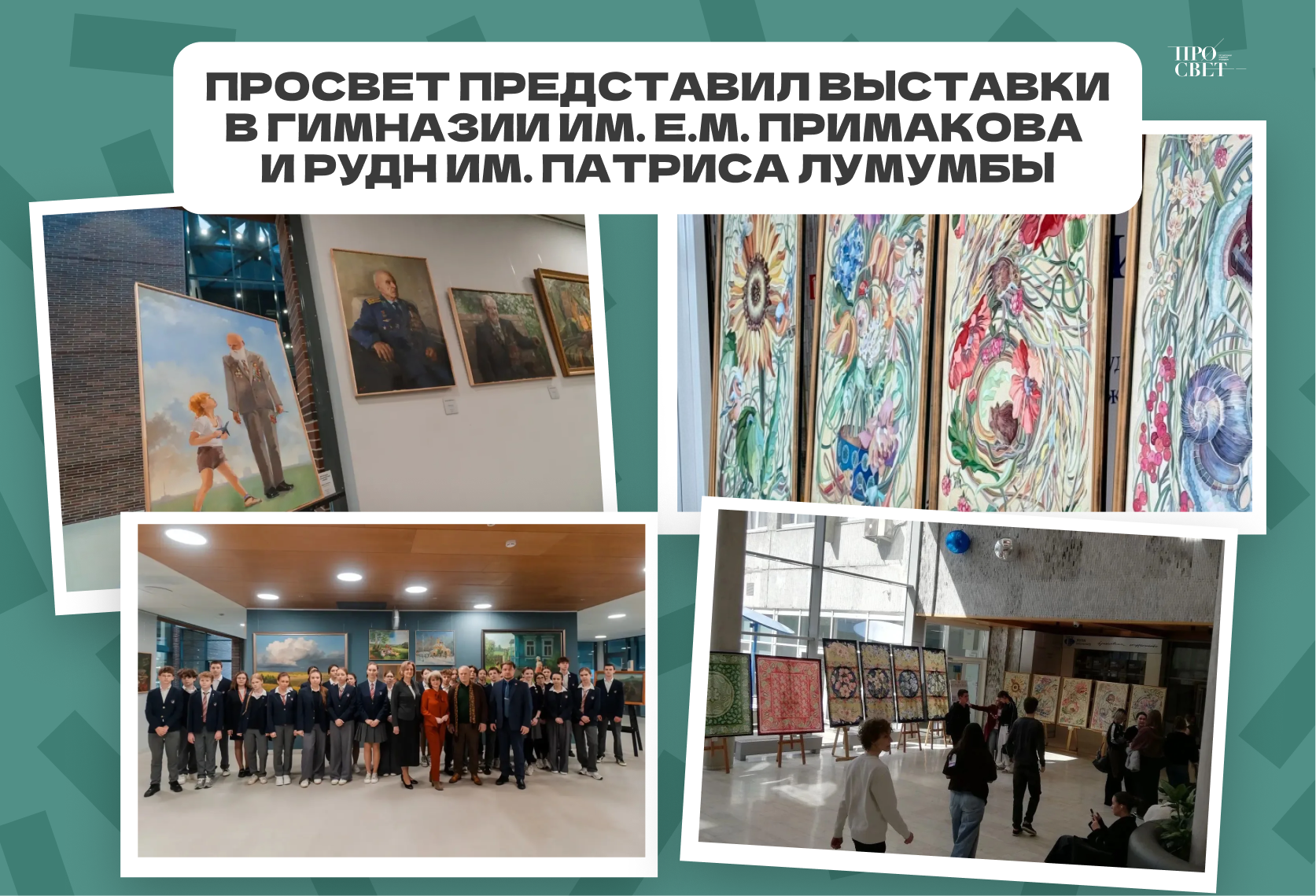 Выставки Государственного университета просвещения вдохновляют ценителей творчества! Экспозиция «Победа будет за нами» продолжает свою работу в Гимназии им. Е.М. Примакова. На торжественном открытии проректор по образовательной деятельности Оксана Валерьевна Гончарова и и.о. заведующего кафедрой дизайна и народных художественных ремёсел Алексей Николаевич Витковский рассказали о творчестве студентов факультета изобразительного искусства и художественных ремёсел.